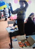 У місті Красногорівка, під час бойових дій, близько 11 тисяч мешканців були змушені жити у підвалах, шукаючи укриття від обстрілів. Це була вимушена міра безпеки, щоб уникнути поранень і смерті. У таких надзвичайно складних умовах, коли кожен вихід назовні був ризиком, життєво важливою була допомога від гуманітарних організацій, до яких долучилась разом із вихованцями і Ольга Миколаївна. Розвантаження гуманітарних посилок відбувалося з особливою обережністю, адже це часто ставало мішенню для обстрілів. Мешканці ризикували життям, аби отримати їжу, воду та інші необхідні речі. Цей період став справжнім випробуванням на стійкість та виживання, як для дорослих так і для дітей. Бібліотека – традиційно місце тиші та читання, але воно перетворилося на осередок творчості та натхнення Під час війни, коли багато культурних установ Красногорівки були пошкоджені або закриті, міська бібліотека стала справжнім культурним центром, надаючи прихисток для творчих гуртків. Студія «Веселка» переїхала до приміщення бібліотеки, яка стала для неї новою домівкою. Тут діти продовжували займатися творчістю, вчилися не тільки малювати, а й спілкуватися. Що допомагало їм відволіктися від реалій війни…