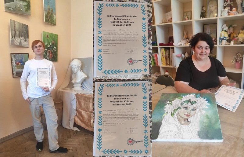 Ольга Миколаївна разом зі своїми учнями була запрошена на Фестиваль культури народів світу, що відбувся в Дрездені. Де творчість студії «Веселка» отримала високу оцінку від знавців художнього мистецтва. За свої творчі здобутки та внесок в культурний обмін між країнами, вихованці разом із Ольгою Миколаївною були відзначені відповідними нагородами. Це стало не лише приємною подією, а й важливим етапом у їхньому творчому здобутку, підтверджуючи, що мистецтво не має кордонів і здатне об'єднувати людей різних країн. Створення конкурсної роботи було цікавим. На полотні поєдналися вулиці, будинки та люди Жовтих Вод і Хемніца, і це стало справжнім відкриттям для журі. Ольга Миколаївна та її вихованці у своїй творчий роботі звернули увагу на те, що між цими двома містами є багато спільного, попри неабияку відстань. Архітектура, ландшафти та навіть атмосфера міст мають спільні риси. А це підкреслює, що навіть у різних країнах люди прагнуть краси та гармонії, а міста-побратими є яскравим прикладом такої єдності.
