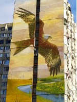 У вересні 2025 р. на стіні будинку №60 по Сонячній Набережній створено новий стінопис «Сокіл», що зображує птаха, який летить над річкою. Ініціатором і меценатом проєкту стала українська компанія «CKS», яка розташувалась у цьому домі і яка займалася усіма організаційними питаннями – від ідеї до реалізації. Команда разом із дніпровським художником, майстром із нанесення муралів Тимуром Левченком, більш відомий як Timo Levin та художницею Тетяною Бондаренко ретельно пропрацювали ескіз малюнку. Ідея виникла відразу – птах, що летить над Дніпром. Знаком відродження, свободи та мужності став сокіл – символ степового краю, який мешкає на Дніпропетровщині і водночас символізує силу, волю, відвагу, стійкість, швидкість, незламність, захист, створюючи образ вільної та сильної України. Своїм пильним поглядом сміливий птах буквально оглядає українські простори: місто, річку, міст і вітряки.