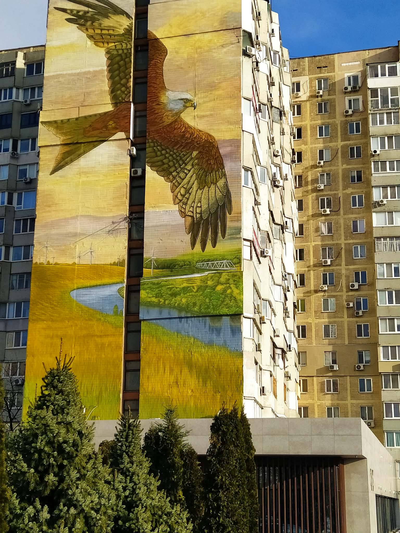 Сокіл на багатоповерхівці став більше, ніж малюнок. Він – окраса житлового масиву, Сонячної Набережної, щоденне натхнення. Сокіл на Сонячній Набережній – символ, що нагадує: ми – Україна!