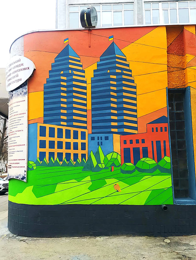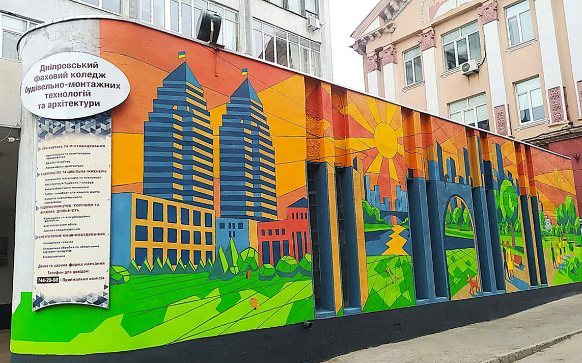 На фасаді Дніпровського коледжу будівельно-монтажних технологій та архітектури (ДФКБМТА, http://dnmont.dp.ua) на вулиці Павла Скоропадського, 8, з’явився новий мурал.