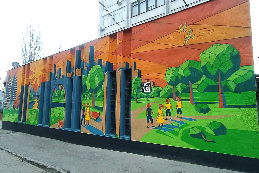 Проєкт реалізований за підтримки Асоціації саперів України (Ukrainian Deminers Association) https://www.uda.org.ua/eore-info/https://www.instagram.com/milakiriluk/ https://www.facebook.com/milakiriluk/, та за сприяння ООН OCHA (UN OCHA). Темою стінопису обрана актуальна тема сучасності – мінна безпека.