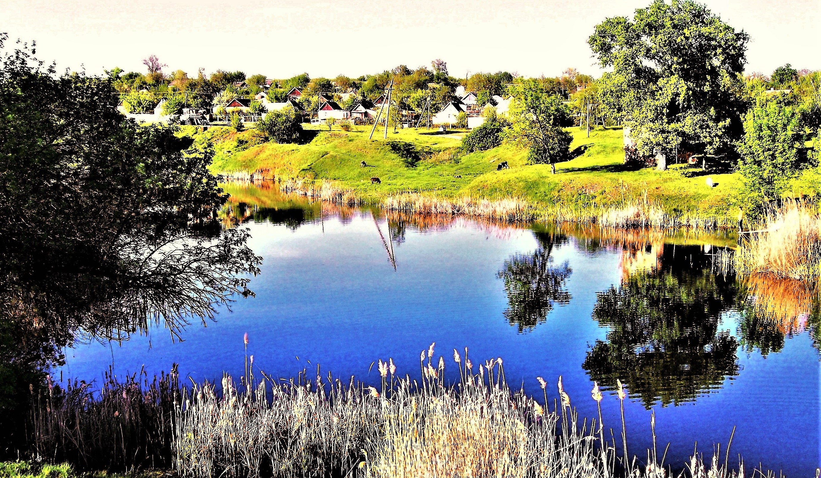 Одразу нижче моста – широка й глибока (тепер не смійтеся: аж! – більше метра буде) заплава. Роздолля прямо для гусячо-качиних зграй! Часто по сезону й перелітні лебеді тут на перепочинок приземляються. Ще – імпровізований водопій для сільської худоби і тирло. А далі на 4–5 кілометрів – знову очеретові хащі. Тільки при в’їзді в село Ново-Олександрівка річка показує блакитну поверхню: тут починається підйом рівня чергового водосховища десь так трикілометрової довжини. Он кладочка до лівобережних вулиць, а ось неподалік – «самодіяльний» смітник прямо біля води – якраз навпроти світлого, чепурненького будинку, де живуть напевно місцеві «аристократи».